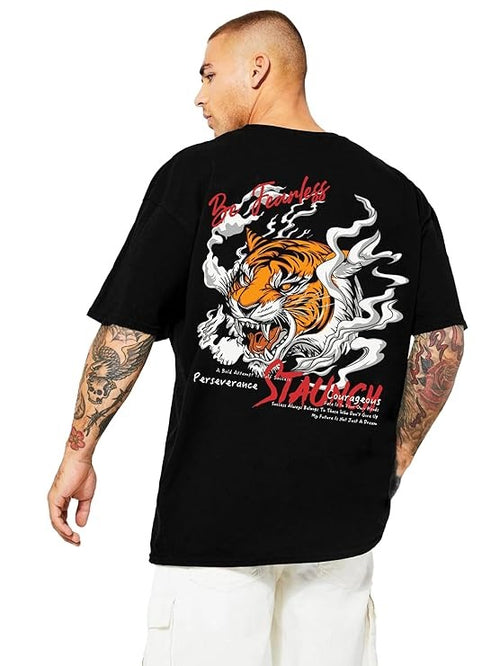 Be Fearless Tiger Oversized T-Shirt for Men – Bold Graphic Cotton Blend Streetwear | Shreekrish Trendz